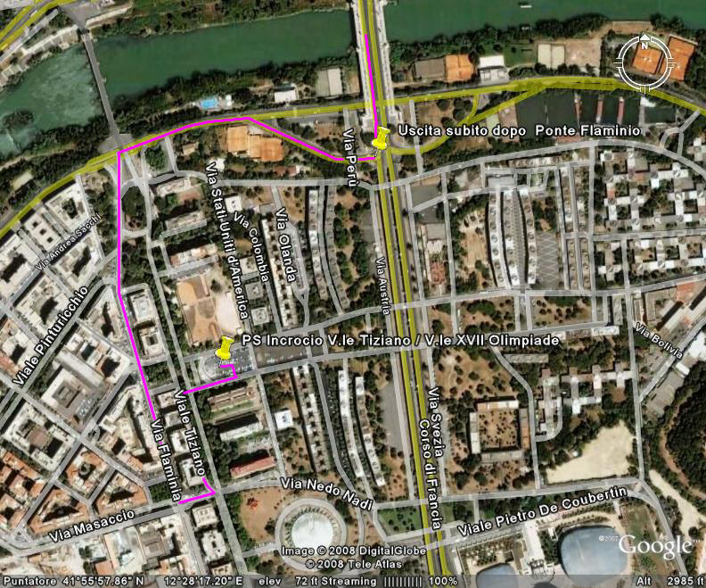 Mappa dal GRA Uscita 6 Roma Centro (Zona Stadio) a V.le Tiziano/V.le XVII° Olimpiade