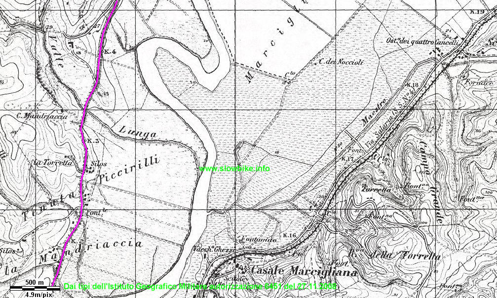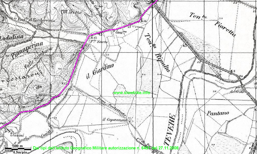 Tevere in bici tratto da incrocio Tiberina a Traversa del Ponte del Grillo a Pista Ciclabile Cartografia IGM 1/25000: www.igmi.org